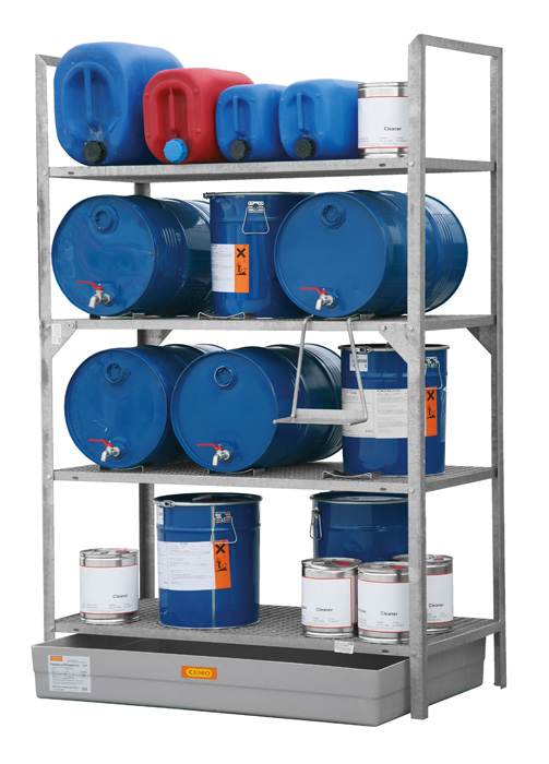Fassregal mit Auffangwanne, 4 Lagerebenen